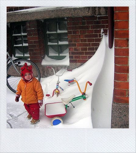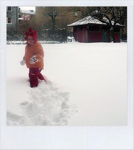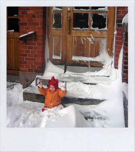 Och så kom äntligen vintern... I morse såg porten ut såhär när Perle som vanligt drog mig ut på gården alldeles på tok för tidigt på morgonen. I danmark så har snön täppt igen dörrar hemma hos folk så att de inte ens kommer ut och i Malmö fick polisen jaga folk som körde "vansinnesfärd" på snöskooter! Ha!