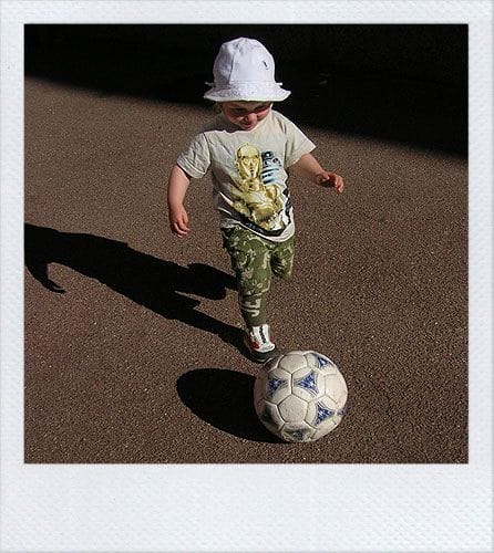 Here she is, our new star player showing skilled ball control as she dodges past her opponent with the camera and has penetrated the defense with her mad footwork. She's got the home-field advantage here under the cherry trees and the SJ-team are thrilled to have her as their main forward, a position badly needed since the other team member is a cat whose natural ability makes him an ideal run-away-and-hide defender.