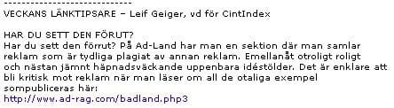 reklam som är tydliga plagiat av annan reklam. Emellanåt otroligt roligt