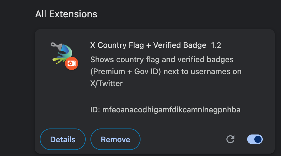 Then load up chrome://extensions/ in your browser and toggle on "developer mode". Then "Load unpacked" and select the directory x-flag-verified and Bob's your uncle.