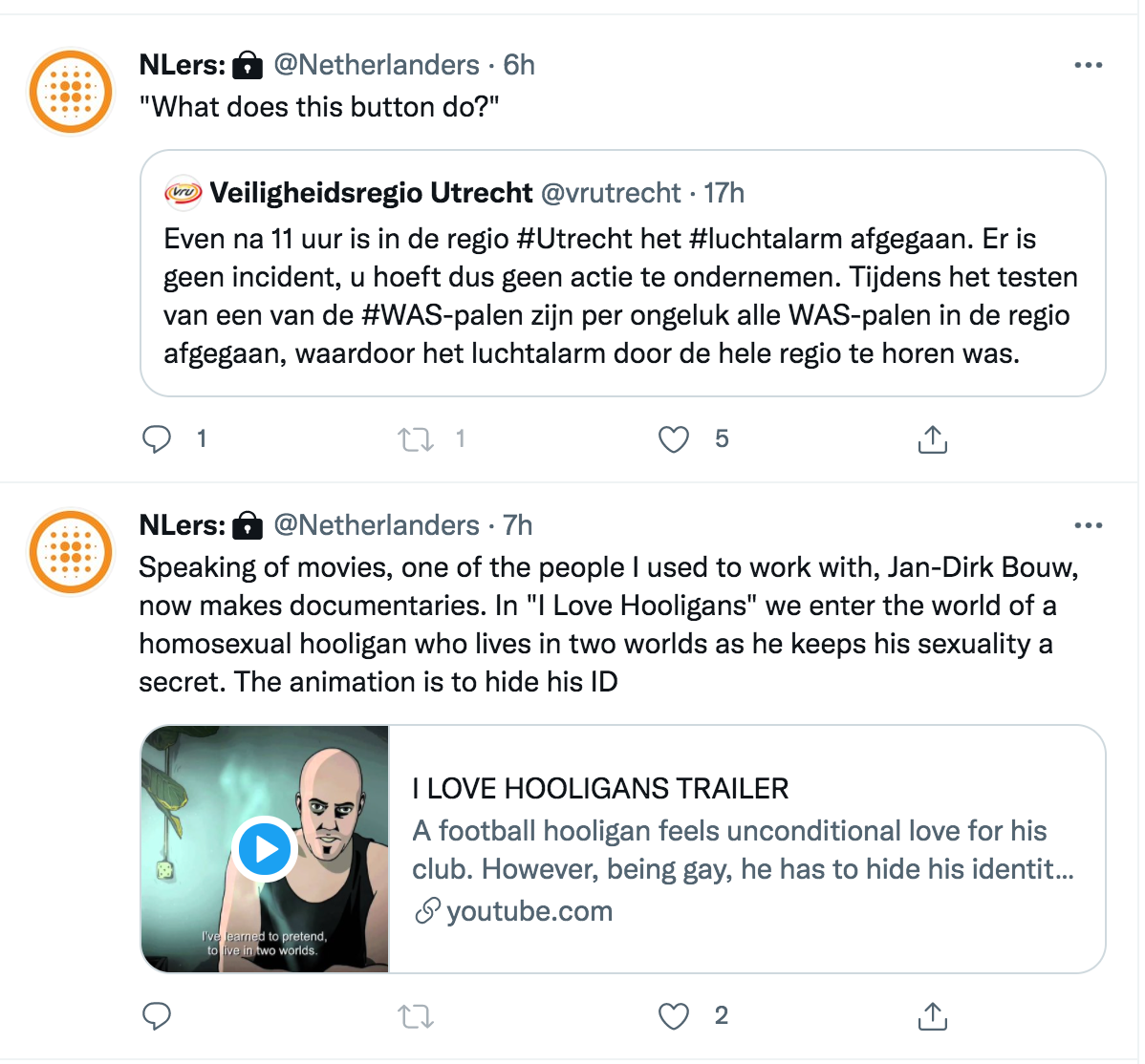 I replied to previous hosts' tweets, and even got a little slap-happy and silly with the Dutch language. I was determined to not stray from the path of tweeting about creativity, despite the group of activists scouring my personal Twitter account for wrongthink. My tweets from the Netherlands account were quite tame, as you can see, but this hasn't stopped people from saying that I tweeted "hate speech" from the Dutch account. Without a digital record, people will believe what they're told.