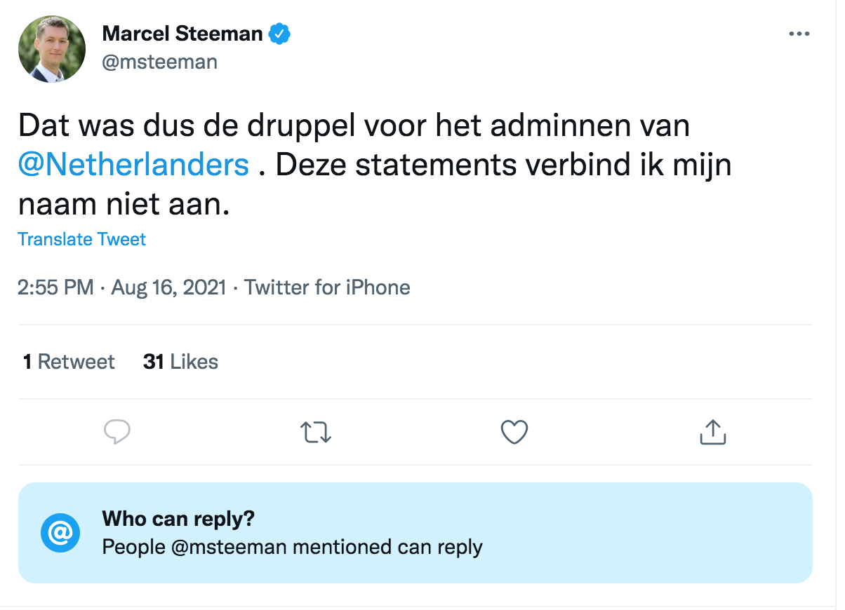Soon enough, one of the moderators and Dutch MP politician upped and quit stating that was "the drop" (that the cup filled over with).