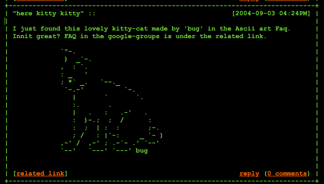 To keep the ASCII art log (not blog) somewhat on concept I also linked as many ASCII art sites as I could find at the time.