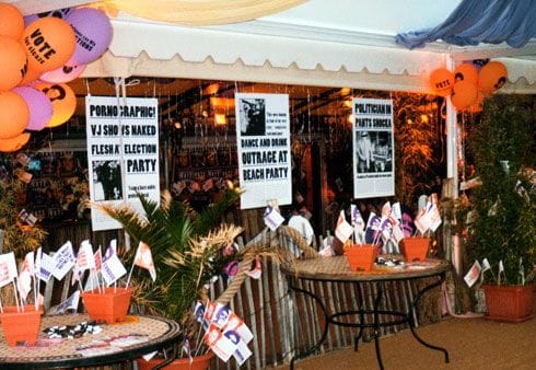 It's time for another Cannes party. This time, like the elections later in the year, the party's theme is politics, something every creative who made it to Cannes is intimately familiar with. Decoration ranged from fake Sun-style headlines, thousands of balloons, actual dirty money to buy your drinks with, and a free cigar to everyone who arrived.