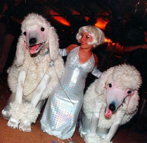 Later she walked her poodles around the party and shared champagne with the guests. I'm not sure who is in which poodle outfit - but the performers are all Nepco.