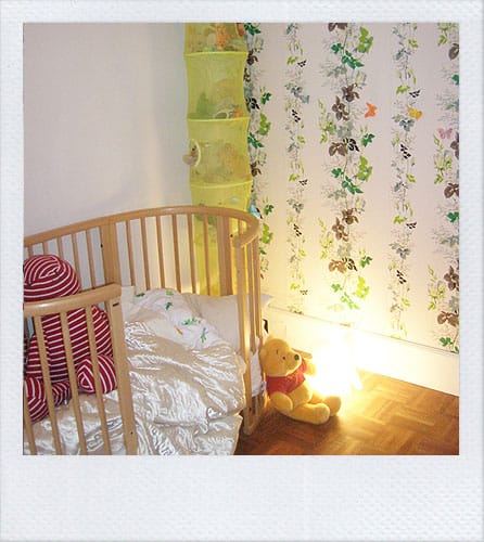 Behind the bamboo pink cherry-blossom curtain hides her Tiffany-style turtle which we bought together when she was three months old. The bamboo curtains are a sale-find from Indiska, two for the price of one at 50% off. I waited months for that deal to happen.