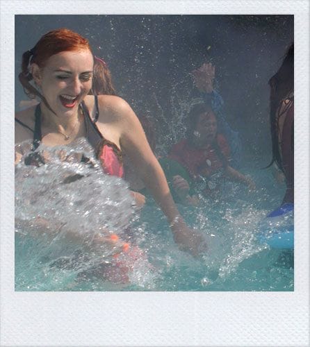 On the count of three, we all had to hop into the pool and rock out. Which we did. High energy hop-hop-hop bunnies! Raah! Holy cow, it was actually quite cold.