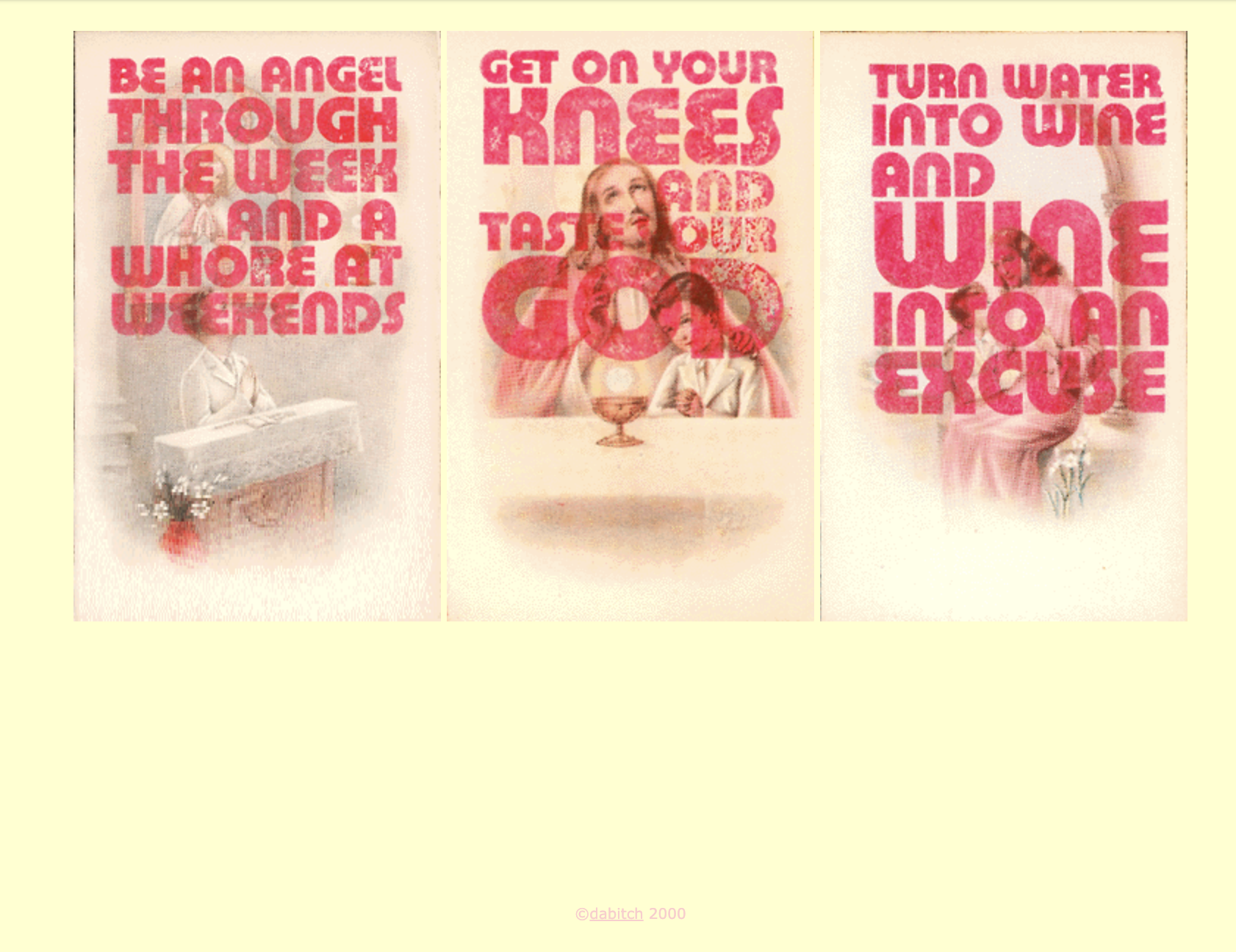 Technically, it's not complicated. It is a simple contact form website. But it does show off our unique business cards. Our brand is party as a religion, and our business cards are hand-stamped headlines on old confirmation cards that we had sourced at a fleamarket. The front of the cards have different headlines, while the back of the cards has our titles and contact information.