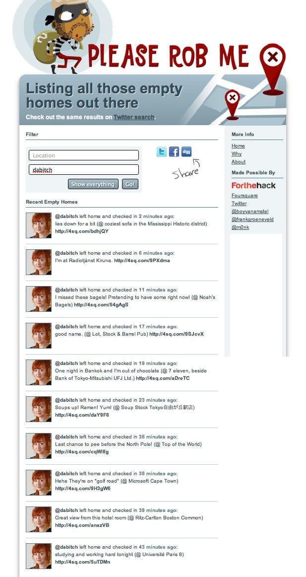 That is if you leave your home announcing it by checking in at airports and presumably live alone, with your house unguarded.