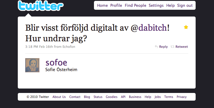 The other worry about these "stalker helper" programs is of course that it announces where you are to anyone who might want to follow you around (I've been trying to freak people out by gowallastalking them, but so far only sofoe seemed to notice that I wasn't in the venue at the time. Well done sistah!)